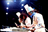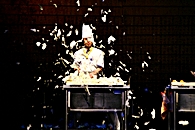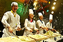 ところでナンタとは「乱打」の意味。つまり「叩いて叩いて叩きまくる」をコンセプトに、包丁、まな板、野菜、ごみ箱などとにかく叩いて叩きまくってます。野菜が乱れ飛んだり火花が散ったりサムルノリのリズムに合わせた響きにいつのまにか熱くさせられます。観客と一緒に楽しめる舞台となっているので、時には観客が舞台に上がって一緒にパフォーマンスすることもあり大いに盛り上がります。パフォーマンスのラストはダイナミックなリズムの乱れ打ちに客席は興奮と熱気に包まれます。「NANTA(ナンタ)」公演はソウルでは市庁、江南、そして2009年には明洞にも劇場がオープン。明洞劇場は明洞繁華街の中にありますので、明洞でのショッピングやグルメ、エステと一緒に計画できるのが大きな利点です。