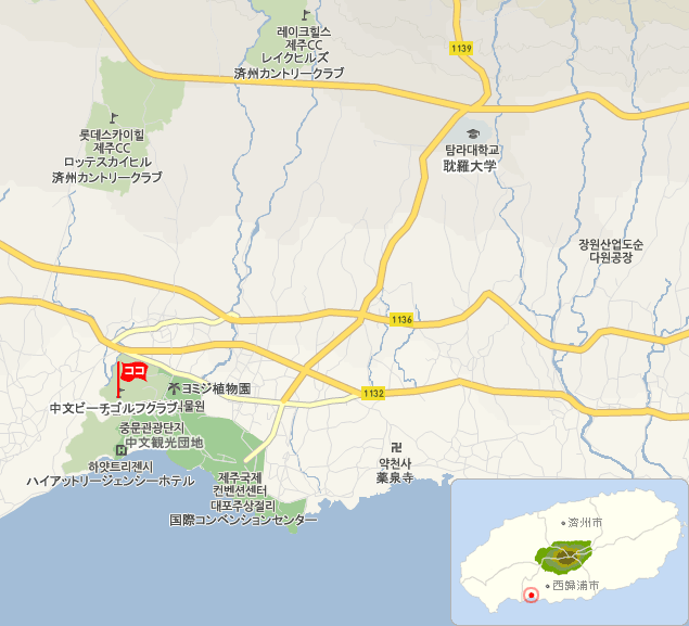 コースは火山島特有の地形を活かし海岸に沿って造成され、自然樹林や椰子の木、青い海がリゾート気分を満喫されてくれます。海からの強い風を利用した世界初のウィンドハザードホール(5番ホール par3) が運営され、またPGAコースを楽しめるよう一部のコースにPGA規格が採用されるなど中文ビーチゴルフクラブならではの工夫がなされています。韓国観光公社が事業主体となっており、韓国内だけでなく海外からのゴルフ観光客誘致の為非会員制で運営されています。