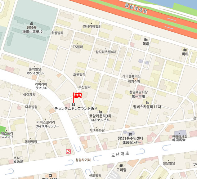 住所 ソウル特別市 江南区(カンナムク)清潭洞(チョンダムドン)一帶