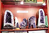紫水晶(チャスジョン)、別名アメジストは韓国の特産品の一つ。韓国産のアメジストは色の美しさで有名です。そのうえ、アメジストは体にいいとされている遠赤外線をたくさん放出することでも知られています。そのうえ、他の物質よりいつも2~3度温度が低いという性質を持っていますので、物を浄化したり、落ち着かせたりする効果があるといわれています。そのせいか、韓国では昔からアメジストのことを紫水晶と呼び、自然と人を結ぶ神秘の石と考えられてきたそうです。この「水晶社」では、こんな自然のアメジストをお手ごろな価格で販売しています。韓国旅行の際は、ぜひ立ち寄って下さい。