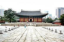 徳寿宮は元々は朝鮮時代に王族が住んでいた宮廷でしたが、朝鮮時代中期に起きた豊臣秀吉の文禄・慶長の役の時、ソウル市内のほとんどの宮殿が破壊され、臨時に王の居所がここに移されました。以降、宮殿として使用されるようになったのです。徳寿宮の建物には伝統的な朝鮮建築の様式だけでなく、西洋の建築様式によって建てられたものも多くあります。なぜなら、19世紀以後、列強勢力が朝鮮に入るようになり、国力はみるみる衰え、徳寿宮の建築物の一部は壊され、新しく西洋の建築様式で建てられたものになったからです。美しく整備されていますが、諸外国に踏みにじられた歴史が刻まれている王宮です。