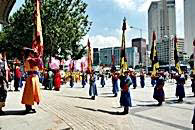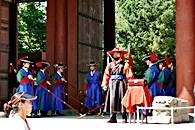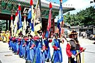 普段禁軍は王の警護や門の開閉、宮内外を見回ったりして王宮の警護にあたっていました。王宮守門将交代儀式は徳寿宮の他、景福宮でも行われています。