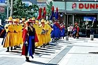 徳寿宮の正門である大漢門の前では、王宮を守る兵士たちの勤務交代式を行っています。この「王宮守門将交代儀礼」は、1995年から伝統文化復活行事の一環として実施されてきた王宮の伝統儀式の1つ。儀式順序、服装および号令まですべて徹底した考証に基づいて行われています。ソウルの市民だけでなく、外国からの観光客にと人気のあるイベントです。解説は韓国語、英語、日本語で行われますので、ぜひご観覧ください。また、徳寿宮の左手の壁沿いの道は、ソウル市内でも雰囲気がある道としてとても有名です。この道を歩いていけば、伝統芸能の上演をしているチョンドン劇場に行けます。