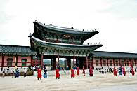 李氏朝鮮の初代王太祖(テジョ)が1392年に開城(ケソン)で王に即位し、その2年後1394年に現在のソウルにあたる漢陽へ遷都を決定し王宮の建設が始まり1395年から正宮として使用され城郭と四大門も整備されました。1592年の文禄の役において破壊され、その後270年間は離宮の昌徳宮が正殿に使用されたため景福宮は再建されずにいました。 1865年に興宣大院君が再建したが1910年から日本の植民地支配が始まると王宮としての役を終え、大半が破壊されてしまいました。現在は北側の部分が青瓦台(大統領官邸)として使用されていますが、91年から正門の光化門を始め復元作業が行われており2025年にすべての復元作業が完了する予定です。