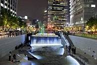 清渓川とは2005年に約30年ぶりに復元されたソウルの中心部を流れる川で、光化門(クァンファムン)の清渓広場を基点に全長5,8㌔の区間が公園などに整備されました。川には22の橋がかかり、所々に滝や噴水が設置され、またアート作品の展示などさまざなな工夫がなされています。毎年春から秋にかけては、清渓広場において、オープンカフェや簡易ステージを設置し、コンサートやパフォーマンスなど様々なイベントが行われます。 清渓川はもともとソウル中心部を流れ、漢江に合流する小さな川でしたが、李氏朝鮮時代から生活排水を流す下水道代わりに利用され、1960年代には水質が極端に悪化し、更に周辺にはスラム街が形成されていったため、清渓川を暗渠(河川などを地中に埋設すること)し、暗渠の上を通る清渓高架道路を完成させました。その後、2000年代に入り、川の復活を要望する世論が高まり、高架道路の撤去など川の復元工事が始まり2005年に復元されました。