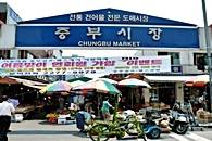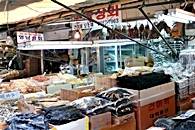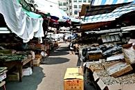 1950年代頃からソウル市民に愛されてきた中部市場。約3万坪のエリアに小さな商店が約1000軒ほど集まって市場を形成しています。主に海産物の干物を中心とした商いですが、日本人の好きな塩辛や明太子、お土産にピッタリな韓国のリ、お菓子、韓国料理に欠かせない調味料を扱うお店もあります。 またサムゲタンを作る時に欠かせない高麗人参やナツメ、またはそれらが全部セットになって袋詰されたもの(1袋1000ウォン程)なども売られていますので、日本に帰って自宅でサムゲタンを煮ることもできます。日本語が通じるお店がほとんどないので、欲しいものをハングル書きした紙を渡したりして、上手に買い物を楽しんでください。