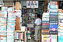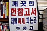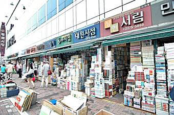 清渓川沿いの平和市場1階には、古本屋が30軒ほど並んでいます。ここは、かつては 200件近くの古本屋が集中していたソウル一の古本屋街でした。最近は古本を求める人が以前より少なくなったことと、インターネットの発達で、オンラインの古本屋が増えたこと、そして何よりも東大門市場や清渓川周辺の発達で店舗の賃貸料が値上がりしたことなどの理由で、多くの古本屋が店じまいし立ち去りました。でも、まだ 30軒ほどの古本屋がこの通りで頑張っています。学生の教材や参考書、キリスト教関係の書籍、文学全集や百科事典など、東京の神田の古本屋街と雰囲気はそっくりです。