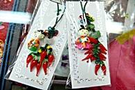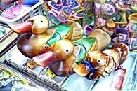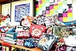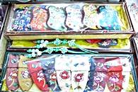 狭いお店の中には、上から下まで、いたるところに素敵な商品が置いてあったり、つるしてあったり。まるで宝探しをするみたいに、すてきな物を発見しましょう。じつはこのお店で作った品物は、仁寺洞や他の地域のおみやげ物屋に卸しているそうです。ですから、ここで買えば3割から4割安いというのも納得できます。このお店では、小さなお土産をある程度の数をまとめ買いすることをお薦めします。まとめ買いすれば、サービスもしてくれるかも。そのやり取りも、市場でのショッピングならではの面白さ。友達や会社の同僚などへのお土産は、ここで纏め買いしませんか?