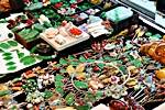 南大門市場には市場用ビルがありますが、そのなかのE棟の2階に「レンタン・アクセサリー商店街」があります。ここには、400以上のアクセサリーに関したお店があり、あたり一面アクセサリーばかり。ここは韓国だけでなく、日本や他の国のバイヤーやアクセサリー業者も買い付けや注文に来るところなんです。ネックレス、イヤリング、指輪から始まって、小さいものからちょっと大きめのものまでいろいろ揃っています。お店によっては、その場でアクセサリーの細工をしているところもあります。女性でなくても、これだけのアクセサリーを見たら、感激もの。南大門市場に行ったとき、ぜひ、「レンタン・アクセサリー商店街」を一度覗いてみてください。