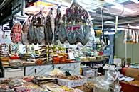 1階は魚市場、約180軒のお店が入っています。 2階は乾物市場でのり、スルメ、昆布、わかめなど 約80軒の乾物屋さんがあります。