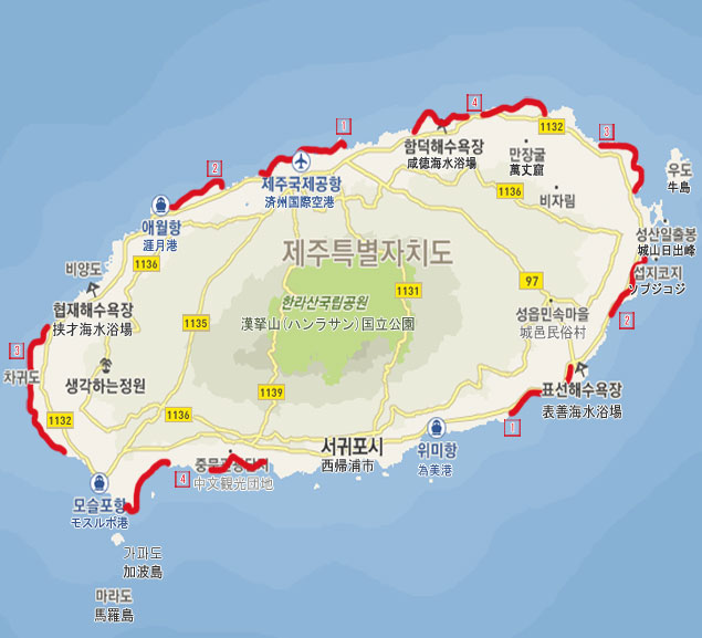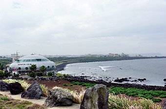東側1ピョソン海岸道路沿いには済州島最大の広さの白い砂浜が広がるピョソン(表善)海水浴場があり、 また済州民俗博物館もこの道路沿いにあります。