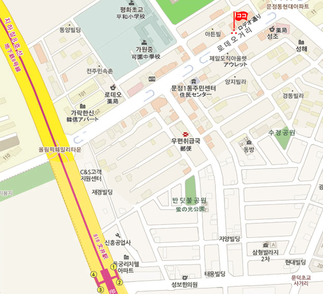 住所 ソウル特別市 松坡区(ソンパグ)文井1洞(ムンジョンイルドン)ロデオ商店街 一帶