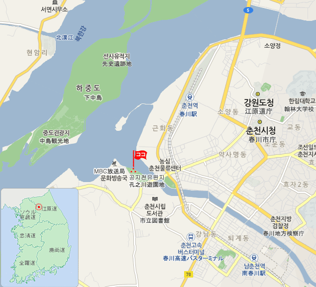 現地 アクセス  セントラルシティから春川(チュンチョン)行きバス乗車、春川バスターミナルからタクシー利用約10分。