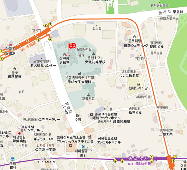 現地 アクセス  ① 地下鉄 3号線 安国駅 4番出口出て 約50メートル、徒歩2分