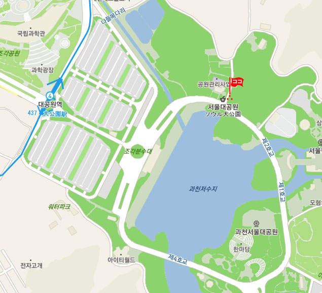現地 アクセス       地下鉄 4号線 大公園(デゴンウォン)駅 2番出口から正面玄関までは徒歩 約10分。