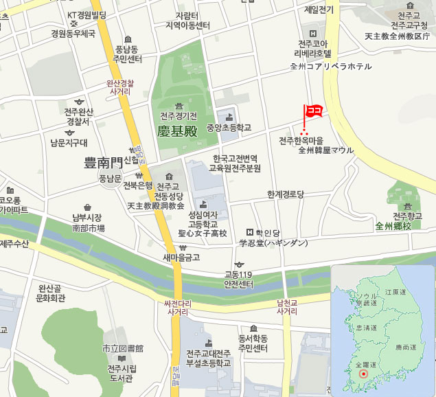 住所 全羅北道(ジョラブット)全州市(ジョンジュシ)完山区(ワンサグ)橋洞(ギョン)、豊南洞(プンナムドン)一帶