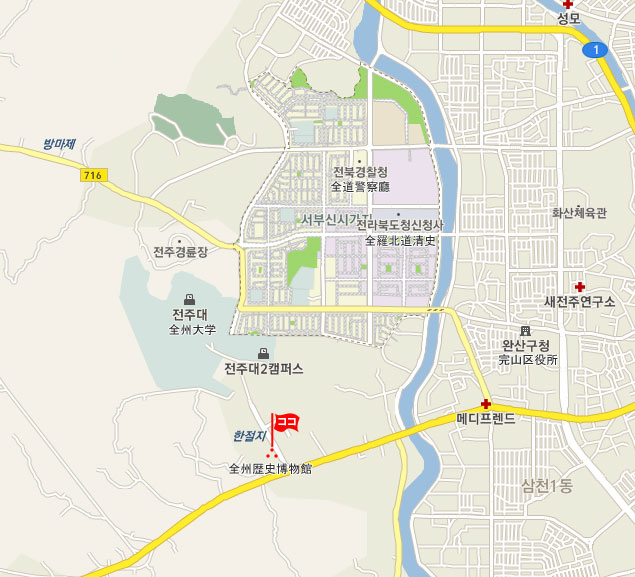 現地 アクセス   全州駅からタクシーで40分所要。高速バスターミナルからは30分所要。