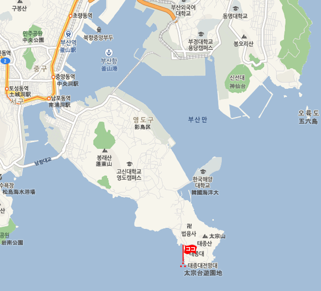 観 光 地 名     :       太宗台 (テジョンデ)/   태종대