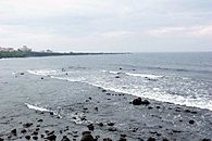 西側3、シンチャンリ―イルカリ海岸道路は済州島の一番西側を走り、夕日の名所として知られる水月峰(スウォルボン)や済州島内では最大の無人島遮歸島(차귀도:チクィド)に渡る船着場などがあります。 西側4の沙係(サゲ)海岸道路では山房窟寺がある山房山や韓国最南端の島、馬羅島(マラド)や釣りの名所加波島(カパド)を望むことができ、周辺には海水浴場も点在しています。 東側1ピョソン海岸道路沿いには済州島最大の広さの白い砂浜が広がるピョソン(表善)海水浴場があり、また済州民俗村博物館もこの道路沿いにあります。