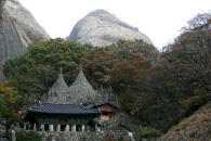 名峰が連なる全羅道(チョンラド)には山の形があたかも馬の耳のように見えるところから付けられた馬耳山(マイサン)という不思議な山があります。馬耳山は東側の雌馬耳山と西側の雄馬耳山の二つの峰からなり韓国では霊山として知られ、この二つの山の間に挟まれるような格好で馬耳山塔寺(マイサンタプサ)があります。馬耳山塔寺は小さな石を一つ一つ積み上げて作られた石塔を伽藍配置した塔寺で、李氏朝鮮時代に李甲童(イ・カプドン)という僧が10年以上に亘り平和を祈願しながら108基の石塔を作り、陰陽五行に従い配列していきました。そのころからこの地は「塔寺」と呼ばれるようになり、現在ではその内80基が残っています。