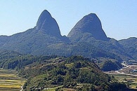 馬耳山は鎮安(ジンアン)から南西3キロほど離れた場所にあるそれぞれ一枚岩からなる双耳峰。東側の鋭く直立した耳が雄馬耳山で高さは678メートル。 少し垂れたような耳が雌馬耳山で高さは685メートルとなっています。この一帯は豊かな自然に恵まれ、1979年に道立公園に指定されました。