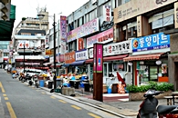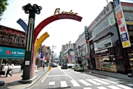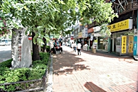 狎鴎亭のロデオコリ(ロデオ通り)は、おシャレなデザイナー・ショップやカフェ、レストランなどが立ち並ぶ600メートルぐらいの距離のL字型の通りです。狎鴎亭のランドマークともいえるギャラリア・デパートの斜め向かい側、マグドナルドの脇の道から始まります。ここにくれば、明洞とは全く違った雰囲気で<韓国>を感じることが出来ます。ちょっとおシャレで、ちょっと上品な、他のエリアでは感じられない空気が漂っています。韓国本来の伝統的な姿とはまた違いますが、これも現代韓国のひとつの風景でしょう。以前は少々雑然としていましたが、最近、道路がリニューアルされ、街路樹なども設置され、歩行者を重視した通りに生まれ変わりました。