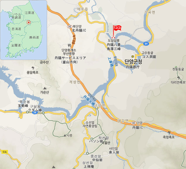 住所 忠清北道(チュンチョンプッド)丹陽郡 丹陽邑一帯