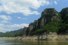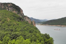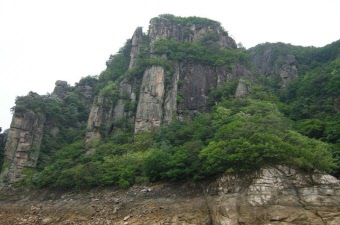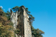 丹陽から西へ約8キロほど離れた位置にある奇岩で、岩の形が河の中に浮かぶ亀のように見えることから亀潭峰(クダムボン)と名づけられました。 切り立った岩が連なる奇岩の景勝地。その昔、文人が岩の色を「筍の様に白い」と表現したことから玉筍峰(オッスンボン)と名づけられました。