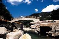 下仙岩から約5キロ離れた位置にある深い緑に囲まれた景勝地。その昔この渓流から二対の竜が天に昇ったとされ、双龍瀑布とも呼ばれています。 数万個大小様々な白い岩が織り成す景勝地で、下仙岩と中仙岩とは兄弟と言われています。