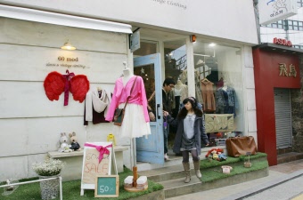 ファッションショップも洋服、靴、帽子、小物、文具、コスメなどからアンティークショップまで、小さいながらも可愛らしいショップが並んでいます。カロスキルは、以前はギャラリーやアンティークショップが立ち並ぶ通りでしたが、時代の変化に伴い、洗練された通りの雰囲気を保ちながらもカフェやレストランが多く立ち並ぶ若い人が好むスポットとして知られるようになりました。昼に訪れても夜に訪れても雰囲気のあるカロスキルは明洞や東大門といったソウルの代表的な繁華街に飽きてしまった人にも、ソウルの新しい一面が発見できる通りです。