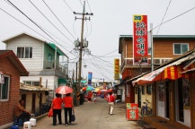 アバイ村は、束草市市に位置する青草(チョンチョ)湖と東明港を結ぶ運河の対岸にある村で、1950年に勃発した朝鮮戦争の際に、北朝鮮側から避難してきた人々がこの地にたどり着き集落を形成していきました。アバイ村の「アバイ」とは、北朝鮮の咸鏡道地方の方言で。「お年寄り」という意味。これは当時集落の住民のほとんどがお年寄りだったため付いた名称です。村一帯は、昔と変わらない造りの家屋や商店が並び、どこか懐かしい空気で包まれています。韓国のスンデは材料を腸で包んだものが一般的ですが、アバイ村では、腸の代わりにイカの身で包んだ北朝鮮の平安道地方の郷土料理である「アバイスンデ」が村の名物料理となっており、わざわざソウルからこのスンデを食べに来る人々もいるほどです。