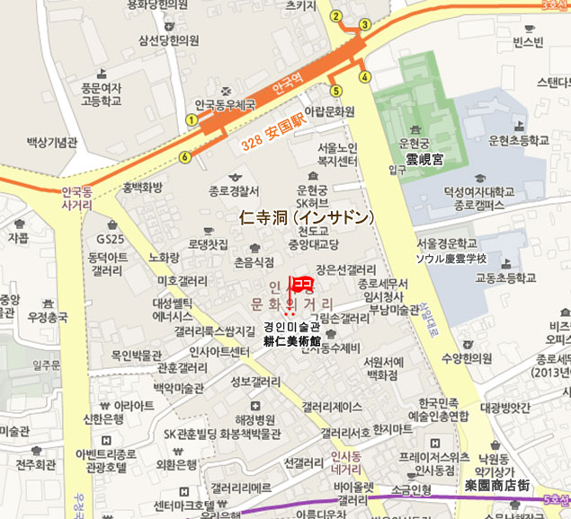 現地 アクセス  地下鉄3号線安国(Anguk)駅 6番出口から 徒歩約5分