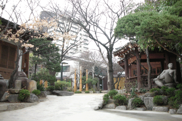 韓国の伝統が残る街.仁寺洞(インサドン)にある耕仁美術館(キョンインミスルグァン)は1983年の開館以来、伝統と現代が交差する芸術家の文化空間として地元の人にはもちろん、外国人観光客からも親しまれている美術館です。約500坪の敷地には各テーマに分かれた4つの展示室建物とアトリエ、野外庭園、伝統カフェがあり、美術館では様々なジャンルの展示会が開催されています。美術館は仁寺洞のメインストリートから少し離れていますので、観光地の中にありながら静かで、展示作品を眺めながらのんびりした時間が過ごせます。