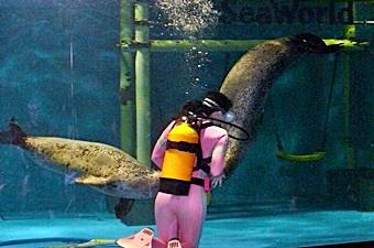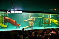 aqua planet63には400種2万匹をこえる海洋生物が展示されています。熱帯、湿地帯、極寒地などそれぞれの生息場所が再現された中で様々な生物が暮らしています。 また時間によってラッコやアザラシ,オタリアやダイバーによるショーも開催されています。その他ヒトデや貝など直に触れるタッチプールも子供達に人気です。