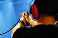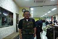 こちらのスタッフのみなさんは日本語が流暢なので安心して説明を聞くことができます。まずはソファーに案内され銃のタイプなどファイルをみながら詳しく指導。銃のタイプによって発射時の衝撃度がかなり違ってくるために銃の選択は重要です。テレビで射撃場の様子を見ることもできるのでしっかり事前チェックしましょう。銃を選んだら防弾チョッキと耳当てをしていざ射撃スペースへ。撃ち方や姿勢など説明してもらいスタッフに支えてもらいながら的に向かって発射!迫力満点の射撃の様子は待機スペースからもガラス越しに見ることができるのでお友達やご家族の勇姿を見ることもできますよ。射撃後は軍用ヘルメットやベストを着てモデルガンを使っての写真撮影もできるのでスタッフの方と一緒に撮影会も楽しめます。カメラを忘れた!という方にも希望すればポラロイド写真(料金別途)も撮ってくれるので安心。最後は射撃に使った紙の的を受付に持っていって採点してもらい紙の的をお持ち帰りできるのでよい記念品になるはずです。日常では体験することのできない貴重な経験をお楽しみください。