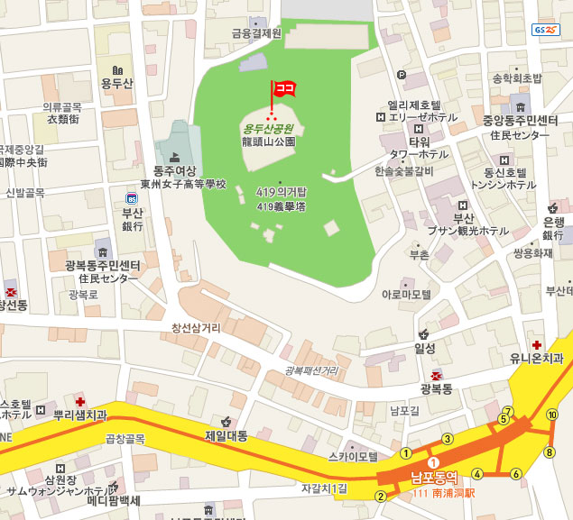 観 光 地 名 : 龍頭山 公園(釜山タワー) / 용두산 공원(부산타워)