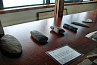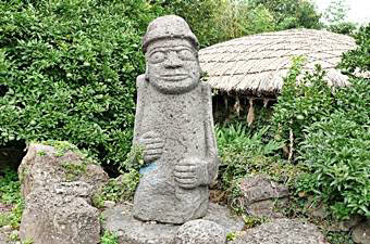 済州道特有の衣装である「カロッ」や子どものゆりかご、5種類の鏡で作った巫俗楽器である「ウルスェ」、草で作った雨着である「トロンイ」などは他の博物館ではなかなか見ることが出来ないものばかり。また携帯用に作られた日時計も、たいへん珍しく貴重です。野外展示室に出ると、庭の一方に石でできた顔が陳列されています。ここが「済州巫神宮」で、昔から済州で伝えられてきた143個の巫神像を見ることができます。「巫神」は済州島の人たちが思いを込めれば幸福をもたらしてくれると信じていた土着の神様で、この済州巫神宮は世界的な民俗資料として価値が認められてもいます。