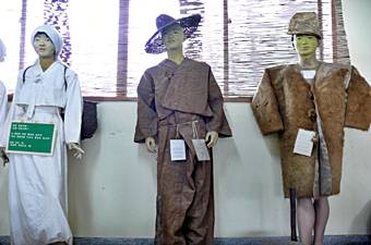 私立博物館の済州民俗博物館は、済州道の昔ながらの生活道具といった庶民的な遺物が主な展示物です。これら展示物はすべてが実際に済州島の人々が使用していた物となっています。博物館の建物の1階は特別展示場、2、3階は常設展示場として使われ、約1万点余りの遺物が保管されています。実際に展示室で見られる遺物は全体の三分の一程度で、竹やわら、石などで作った庶民的なものが大部分です。海女たちが使っていた道具、海に入るときに着ていた水着、石臼なども見ることができます。また、済州島独自の民間宗教の巫俗信仰や固有風俗に関連した不思議な物も見学できます。