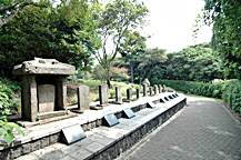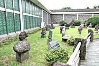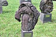 溶岩石で作った石のオブジェが展示されている屋外展示場