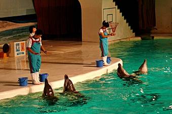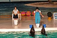 大プールで行われるショーにはイルカをはじめ、オットセイやサルなど多彩なショーを楽しめることができる。 イルカショーが楽しめる場所は他にもあるが観客が舞台に上がり一緒にショーを盛り上げるのはここだけのお楽しみ。