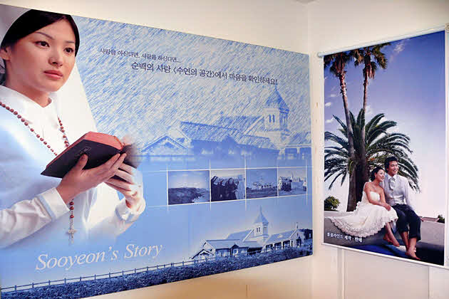 ドラマ「オールイン」の記念館。本来はドラマに使われたイナ(イ・ビョンホン)の家と、スヨン(ソン・ヘギョ)の育った修道院と教会のセットがありましたが、2003年に台風で全壊、その後の建て直し工事の末、ドラマ記念館「オールインハウス」としてオープンしました。 地上1階、地下1階、270坪という規模で建てられたオールインハウス。様々な展示品やメイキングフィルム、台本なども見ることができます。