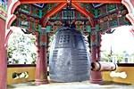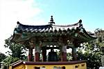 城山日出峰の麓にある東岩寺。韓国本土の寺院と同様にカラフルな色彩が使われている。 境内の鐘は朝の時を告げてくれる。鐘の音に起こされて城山日出峰へ日の出を見に行く人も多い。