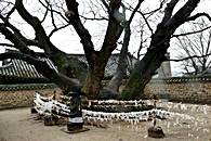 安東河回村(アンドンハフェマウル)は韓国国内に数多くある民俗村の中でも李氏朝鮮時代に形成された村がその当時の姿のまま残っている点で、特に歴史的価値が高いとされ、村全体が重要民俗資料に指定されています。99年にはイギリスのエリザベス女王が訪問され世界的にも知られるようになりました。またこの村から多くの偉人を輩出した豊山 柳(プンサン リュ)氏を称え「豊山柳氏の村」とも言われています。韓流スターのリュ.シウォンもこの一族出身で河回村に宗家があります。またこの村は穏やかな土地柄に反映して優れた両班(貴族)の治世のもとで庶民と両班の関係も良好でした。 12世紀ごろから庶民によって伝承されてきた仮面劇は土地の神を喜ばせ村の災いを払い福をもたらすために演じられてきました。時には両班や儒教学者や僧なども劇の対象にされ、悪事を暴露して風刺するなどユーモラスに演じられましたが両班と庶民の関係が良好だったため、この時ばかりは両班も庶民の無礼に目をつぶって一緒になって楽しんだと言われ、そのため仮面劇が発達していったと言われています。河回村では3月から11月の週末に特設公演場で仮面劇を行っています。また仮面劇が最初に行われたといわれる参神堂(サムシンダン)には樹齢600年以上のケヤキの霊木が奉られています。