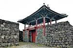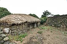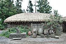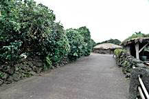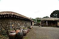 城邑民俗村は現在も実際に人々が生活しているという本当の意味での民俗村。重要民俗資料188号に指定されており家の改築や修理などにもすべて国の許可が必要という程。民家の石垣は済州島の強い風が家の中に入り込まないように石を巧みに組み合わせ強固につくられています。 済州島の民家は通気性のよい板の間が基本。これは温暖多湿な済州島の気候に合わせたためで、オンドルなどの暖房施設がないなど本土の民家とは違った造りをしています。