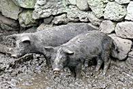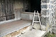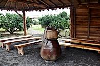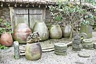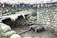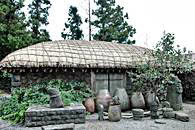 済州島には「三多三無」という言葉があり「三多」とは「石と風と女性が多い」という意味。なぜ女性が多いかというと、男達が海に漁に出てそのまま遭難して戻ってこなかったなど当時済州島の男性の死亡率が高かったことから由来します。「三無」は「泥棒と乞食と(泥棒よけの)大きな門がない」という意味。石だらけの自然環境が厳しい済州島では昔から隣人との協同精神が発達しておりそのため泥棒も乞食もいない、だから大きな門も必要ないという話からきています。実際民俗村の民家の前には門はなく代わりに3本の棒が横に並んで通されています。 これは片側が全部はずしてある場合は「在宅中。おはいりください」、1本通してあれば「外出中、すぐ戻ります」、2本なら「半日いません」、3本は「しばらく留守にします」という意味だそうで、訪問客がひと目で在宅の有無を知ることができるという済州島ならではの風習。このように邑民俗村では済州島の伝統文化を肌で感じることができます。